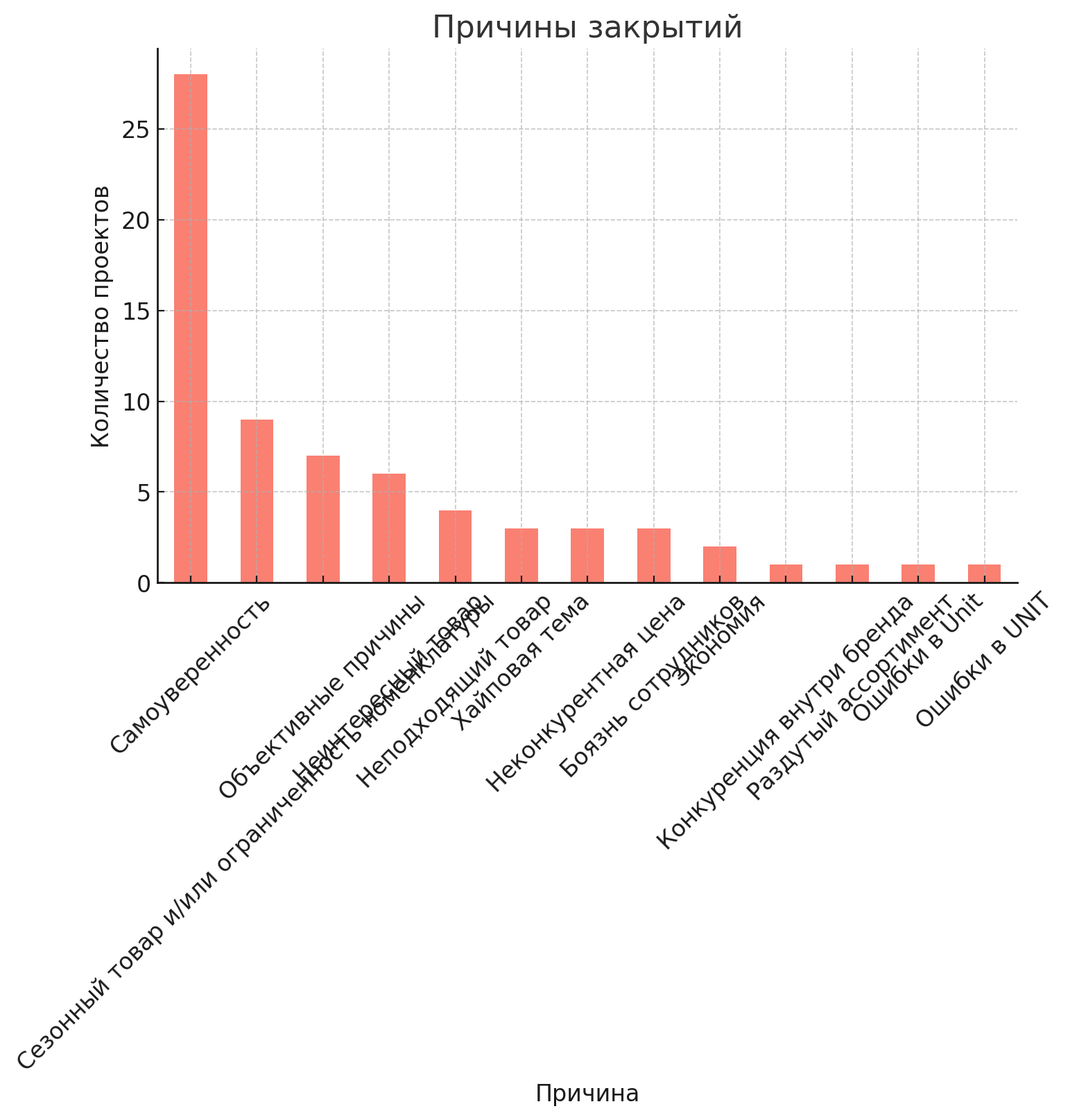 📊 Причины закрытий по проектам